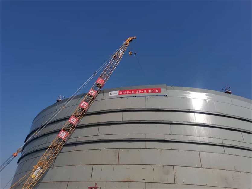 The sixth tank of Dongying Crude Oil Depot Relocation Project was capped. Congratulations on the capping of all six tanks!