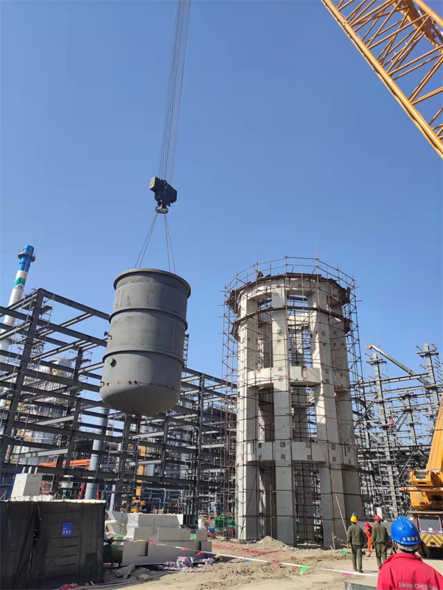 Lifting of the first section of the decompression tower of Hebei Xinhai Project
