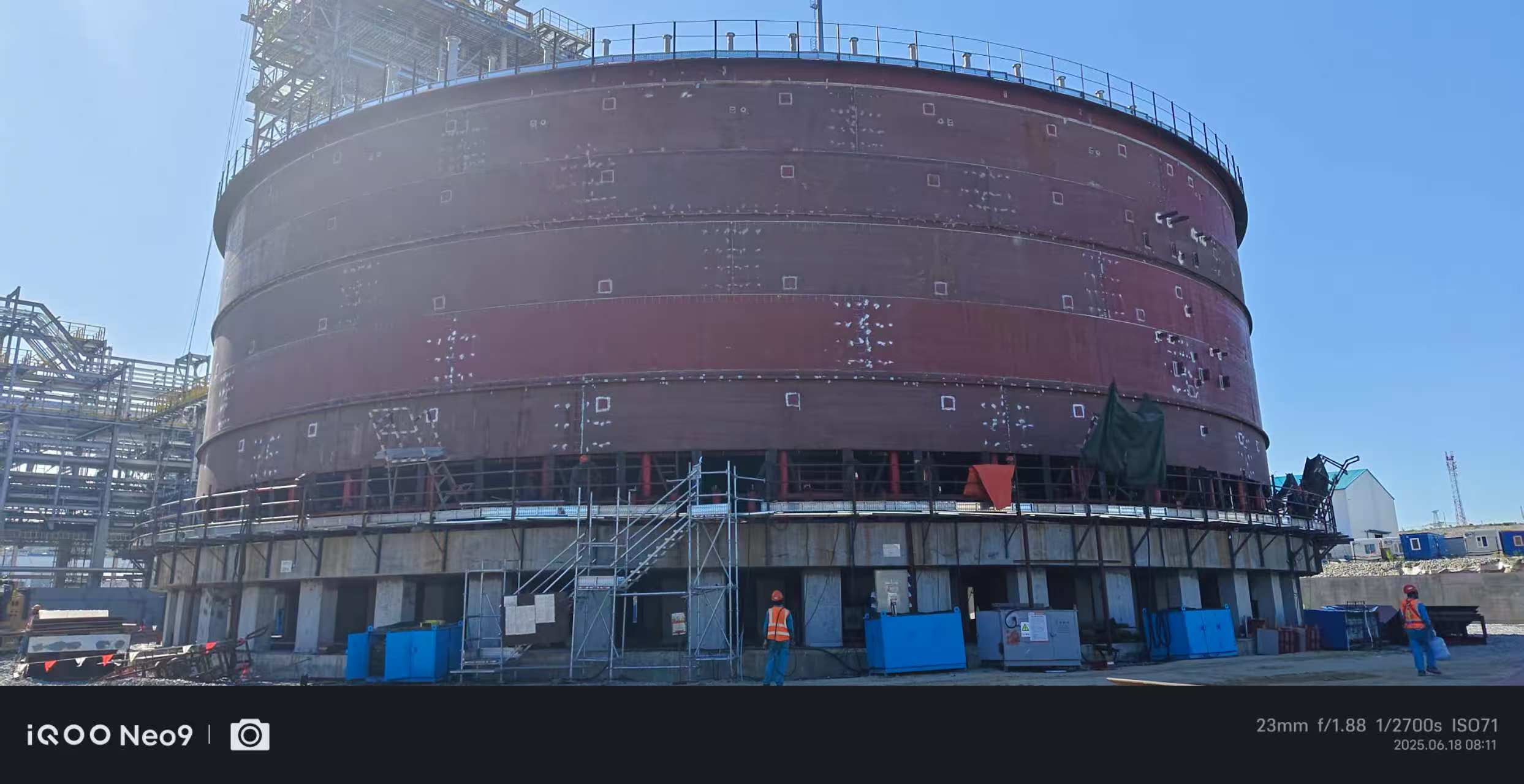 热烈祝贺山东艾科申石化设备-裕龙岛项目首台储罐封顶!
