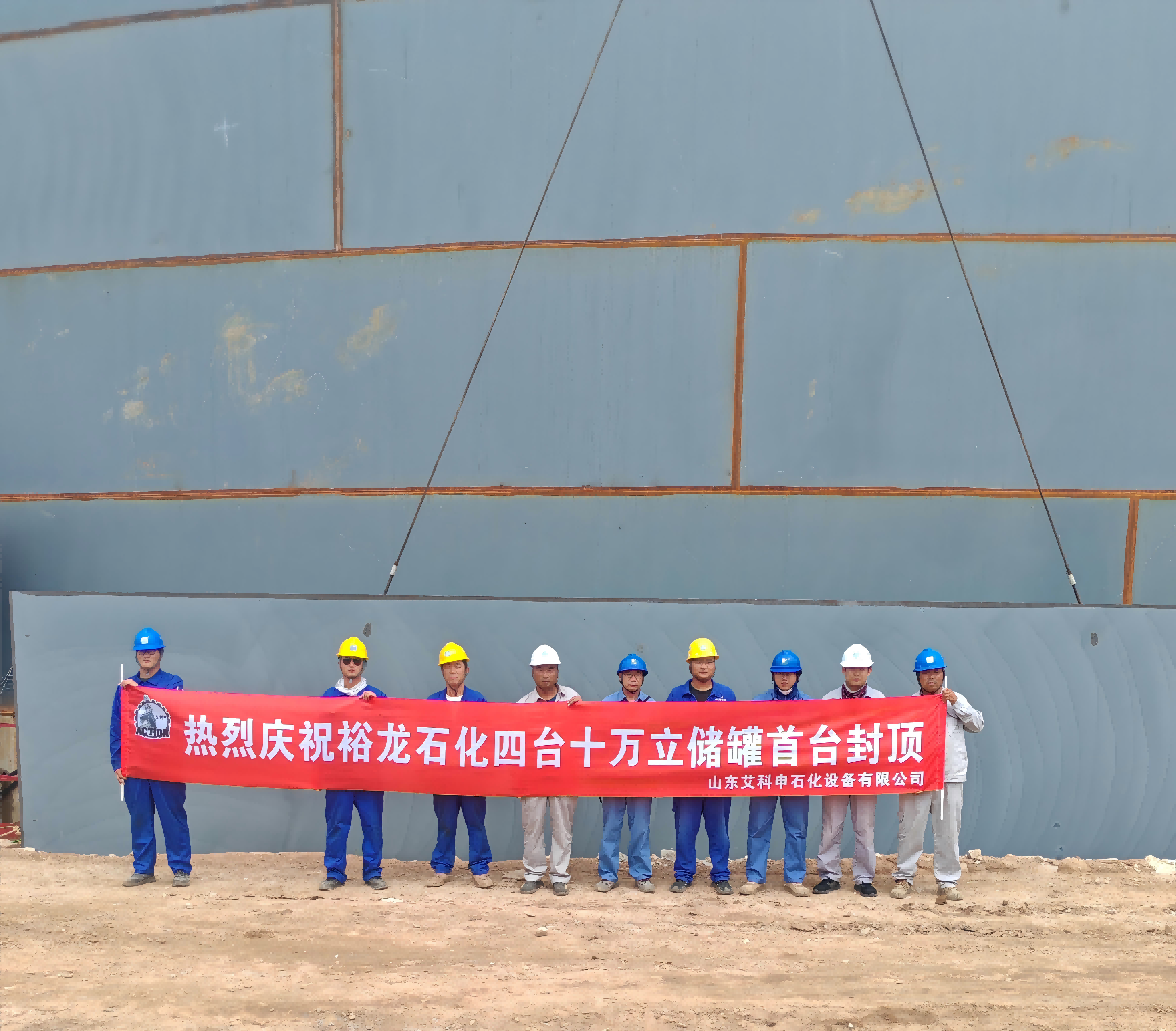 热烈祝贺山东艾科申石化设备-裕龙岛项目首台储罐封顶!
