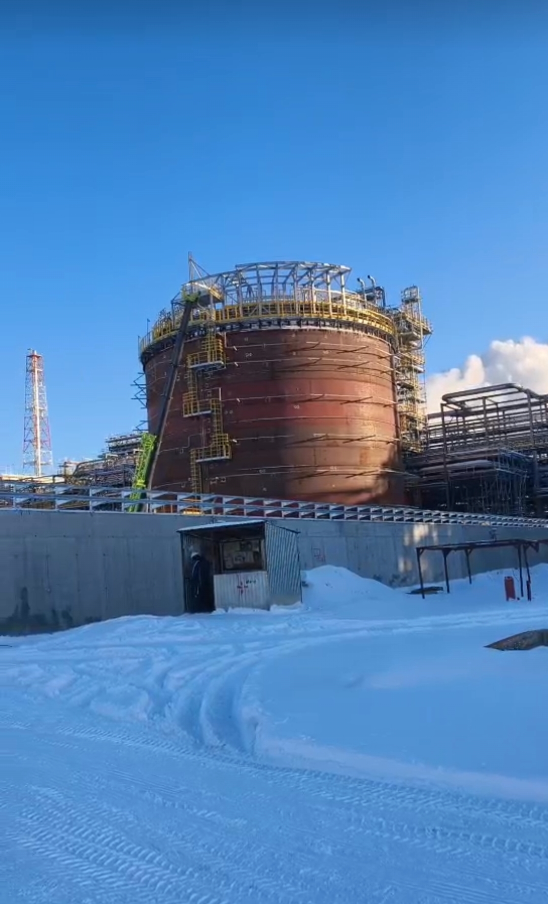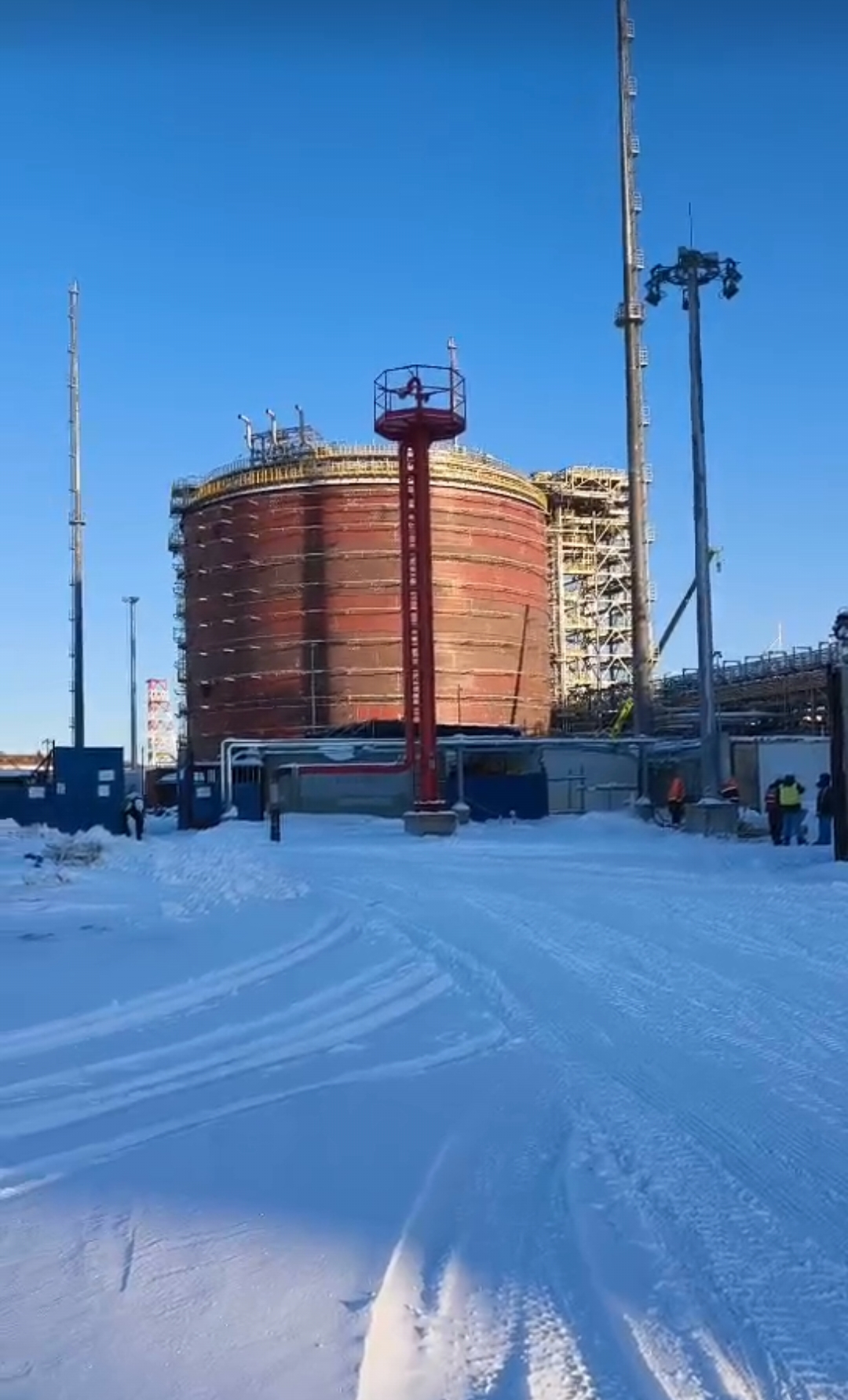 阿穆尔项目LNG7000m³、35000m³、50000m³三台储罐倒装施工,安全落地。