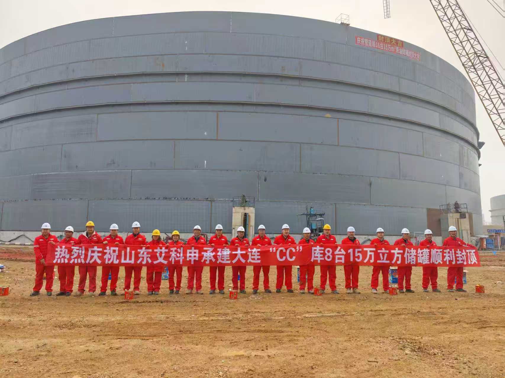 热烈庆祝山东艾科申承建大连“CC”库8台15万立方储罐顺利封顶