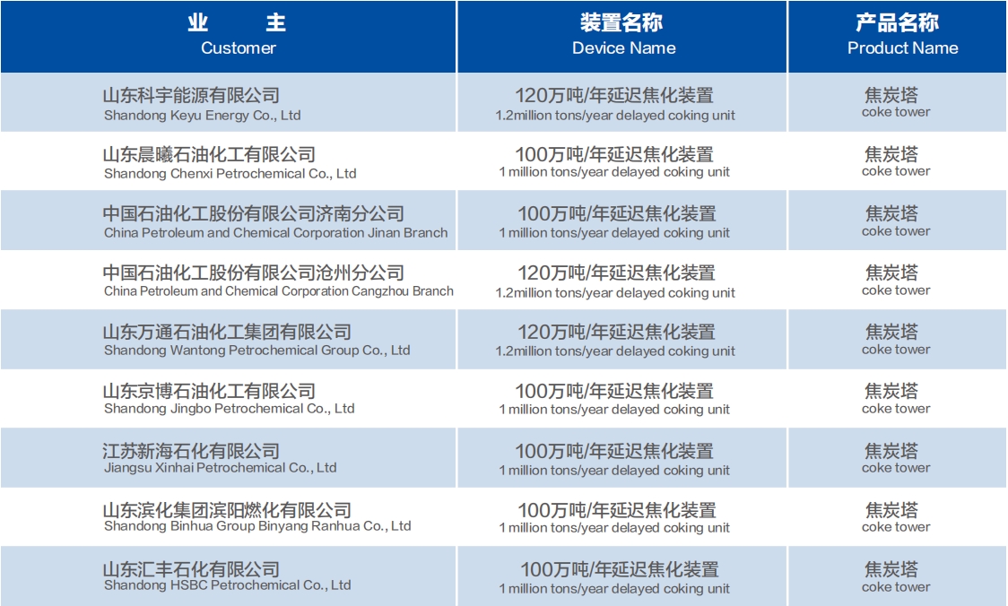 焦化装置焦炭塔业绩表