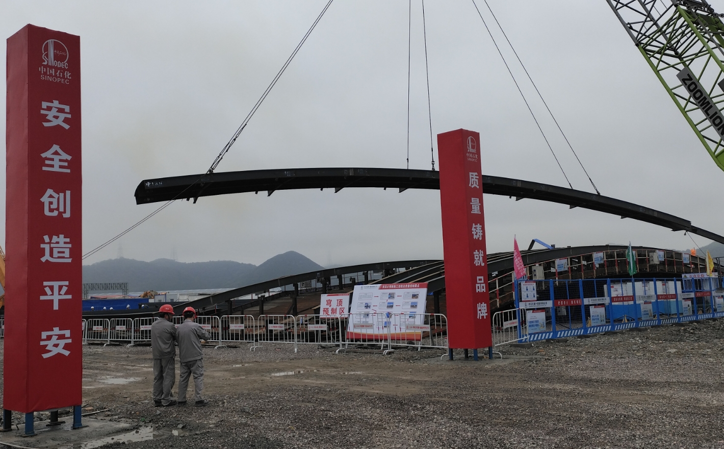 艾科申舟山LNG项目工程——首片拱顶片移位