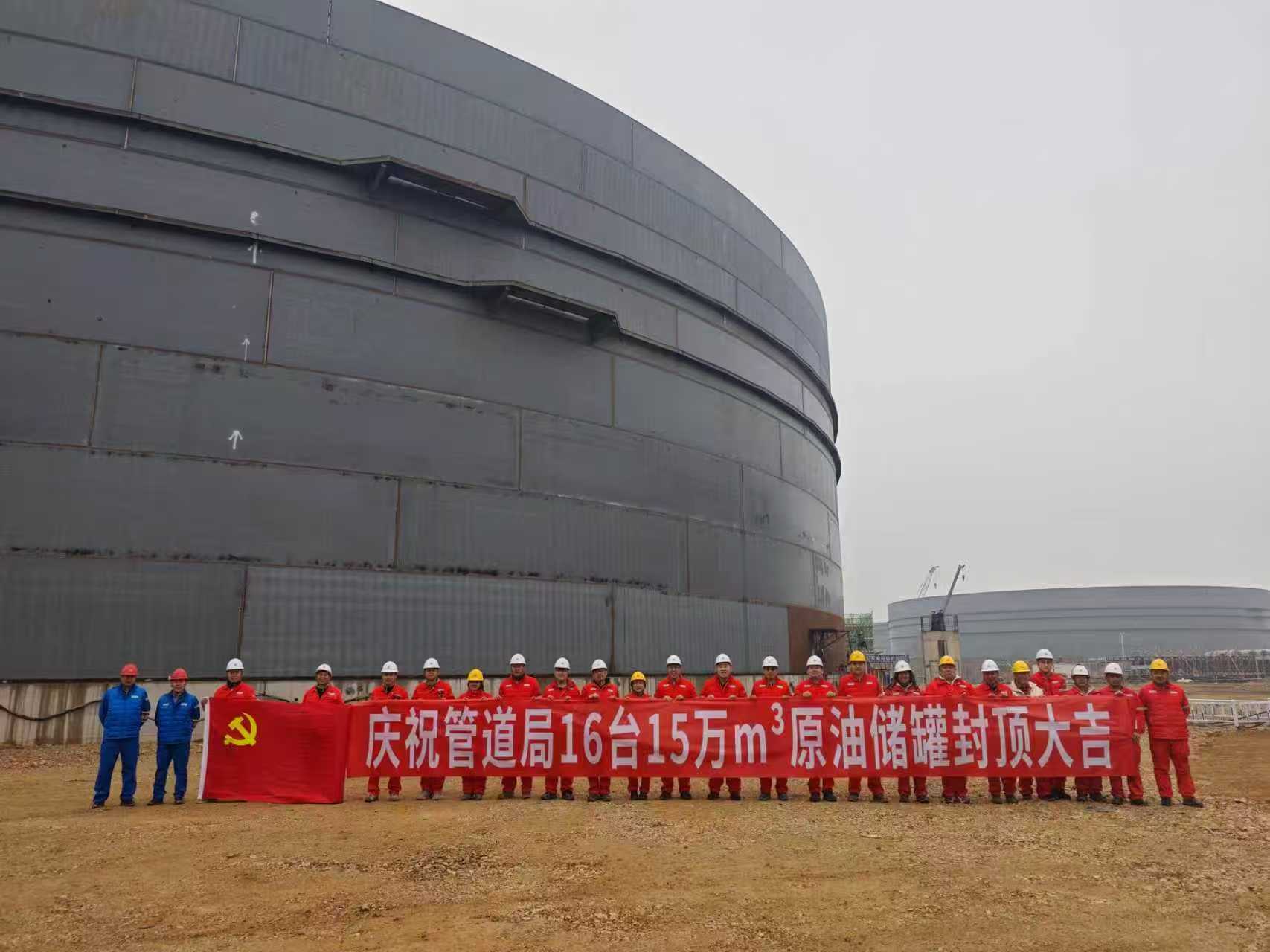 热烈庆祝山东艾科申承建大连“CC”库8台15万立方储罐顺利封顶